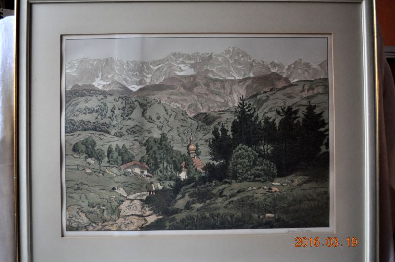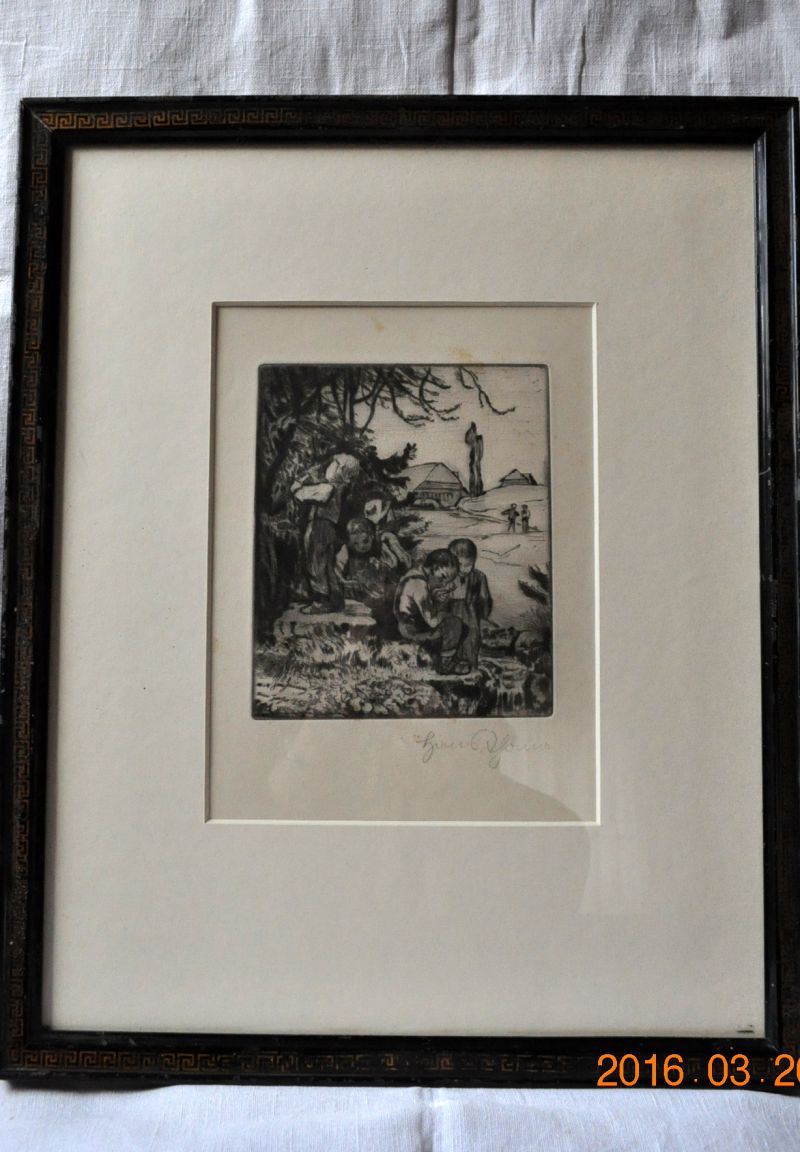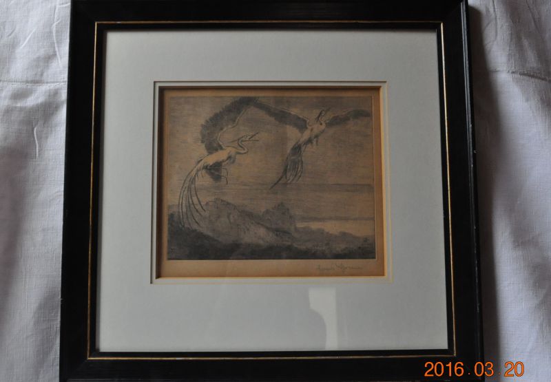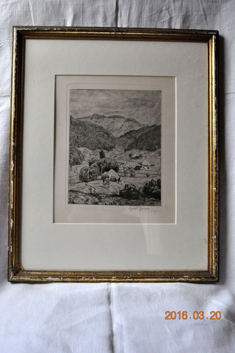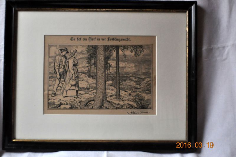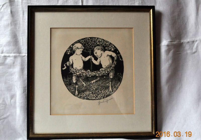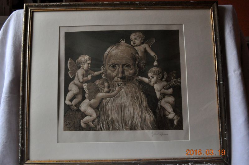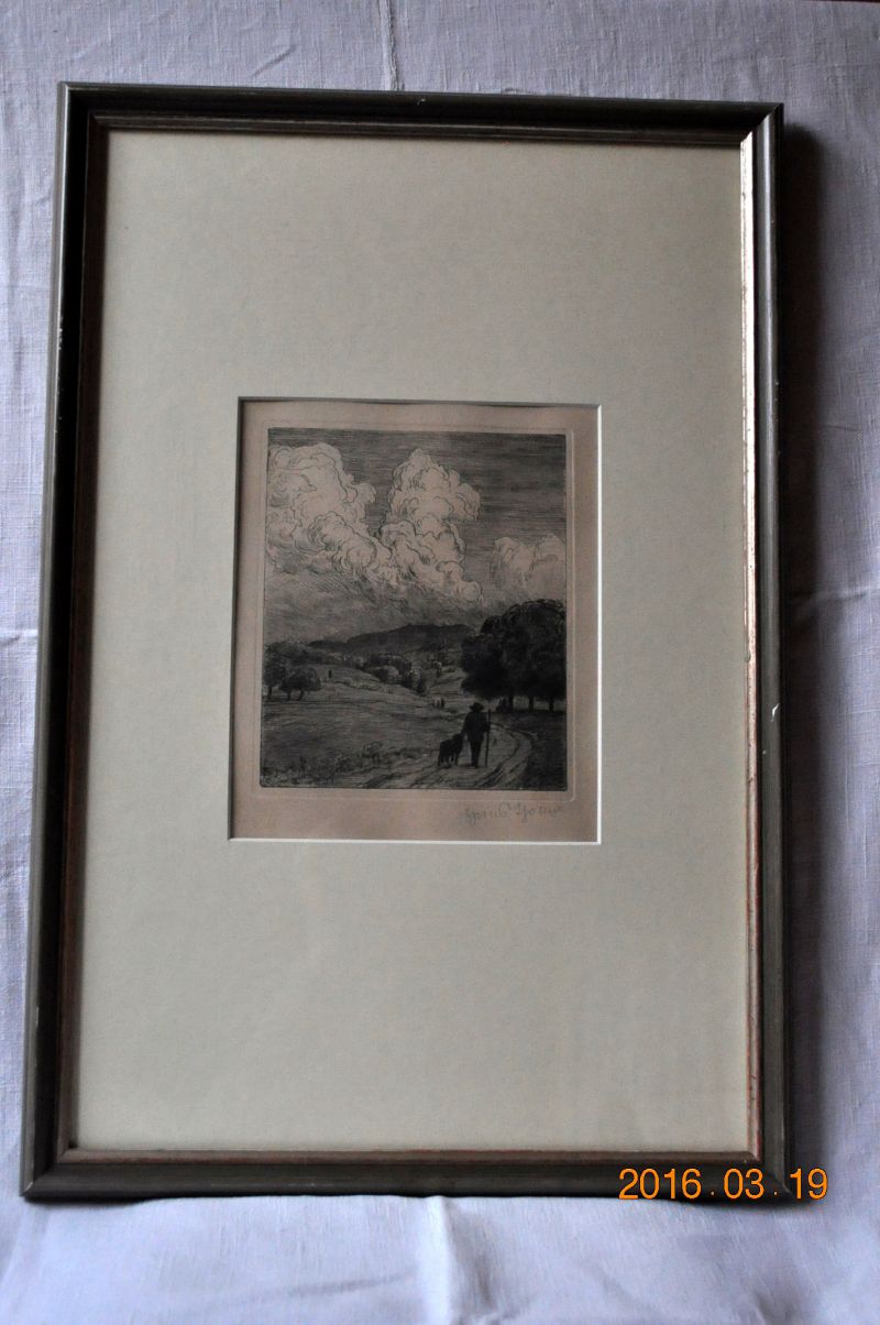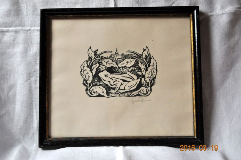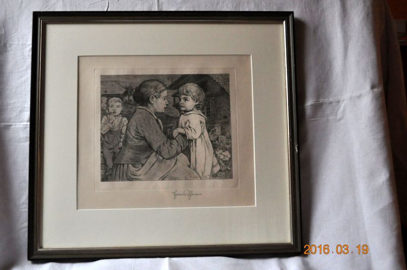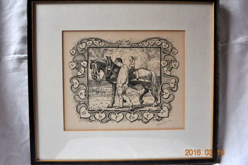 Gerahmter, kollorierter Druck, signiert – Rahmen leicht beschädigt