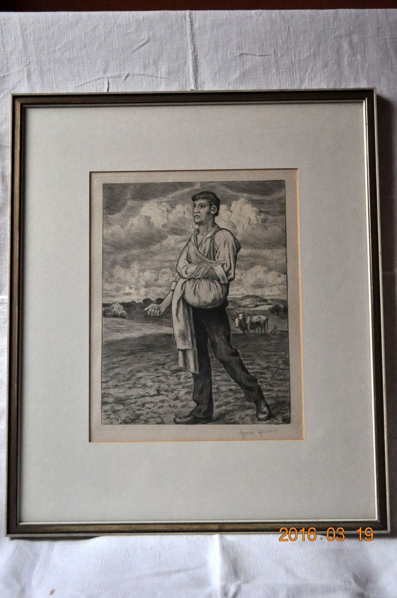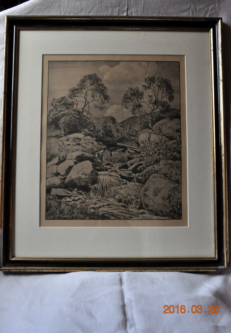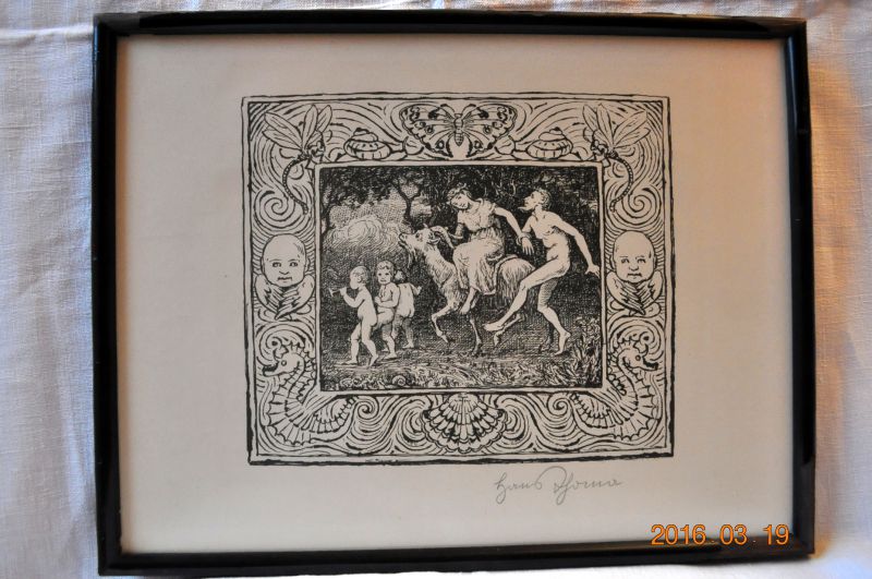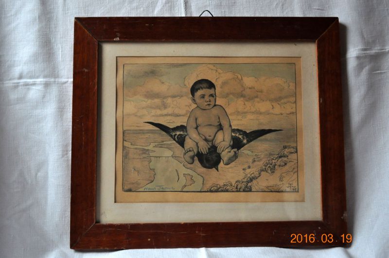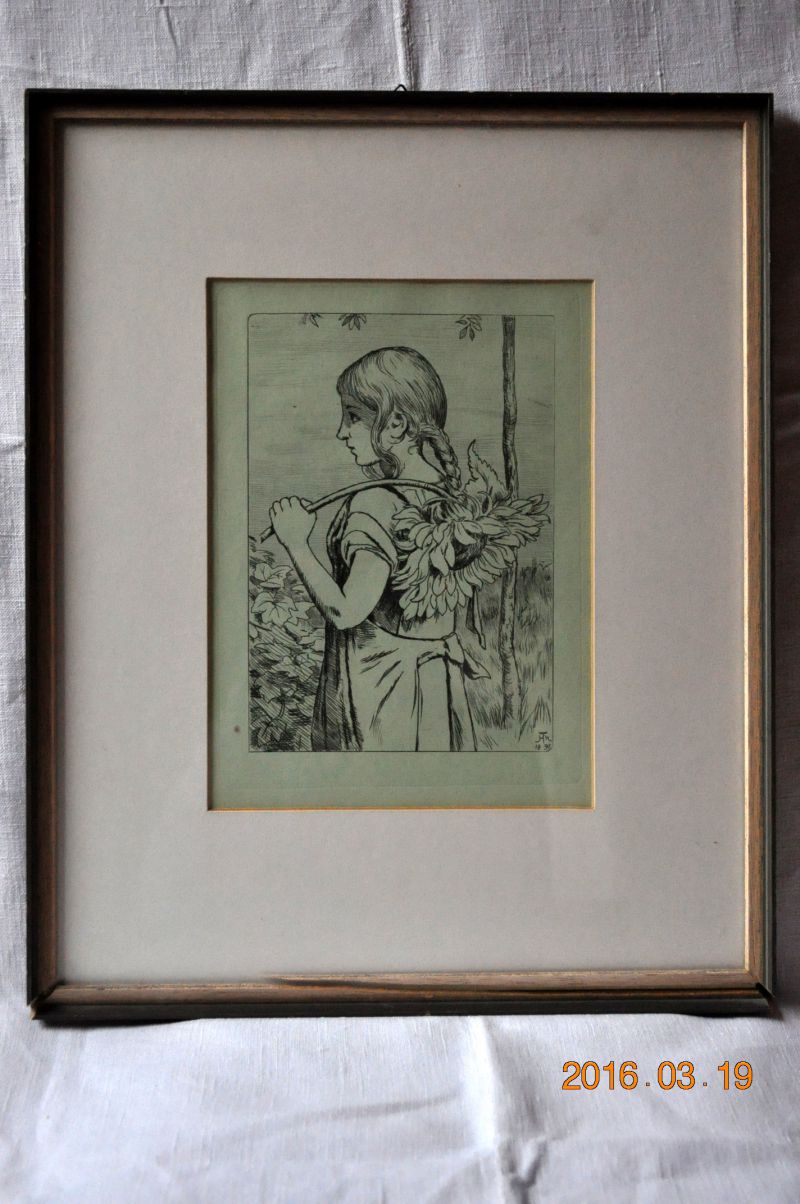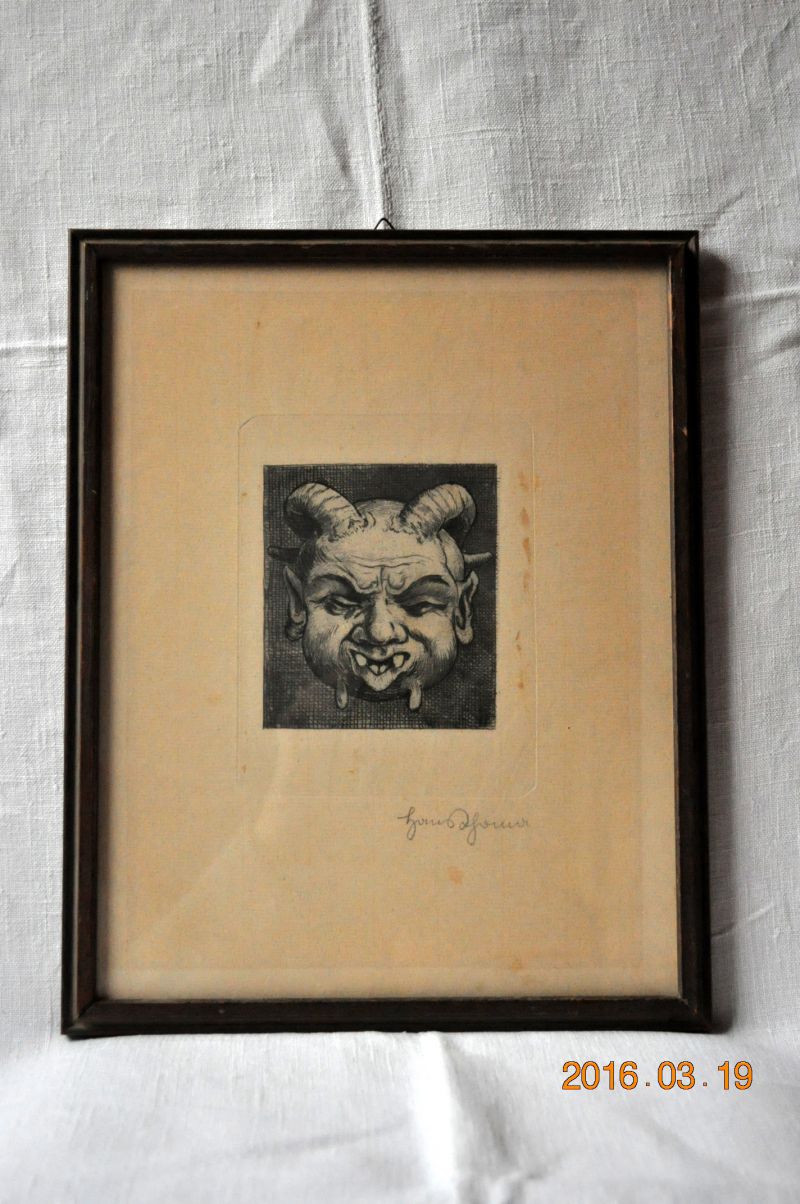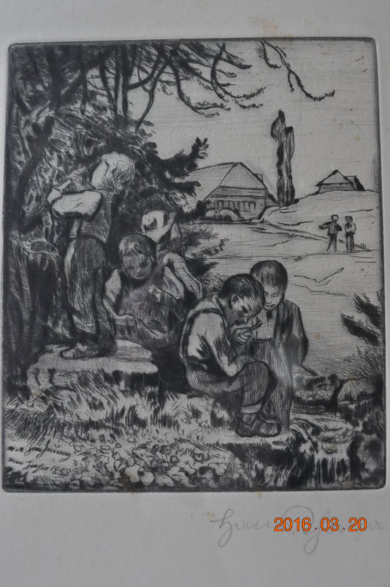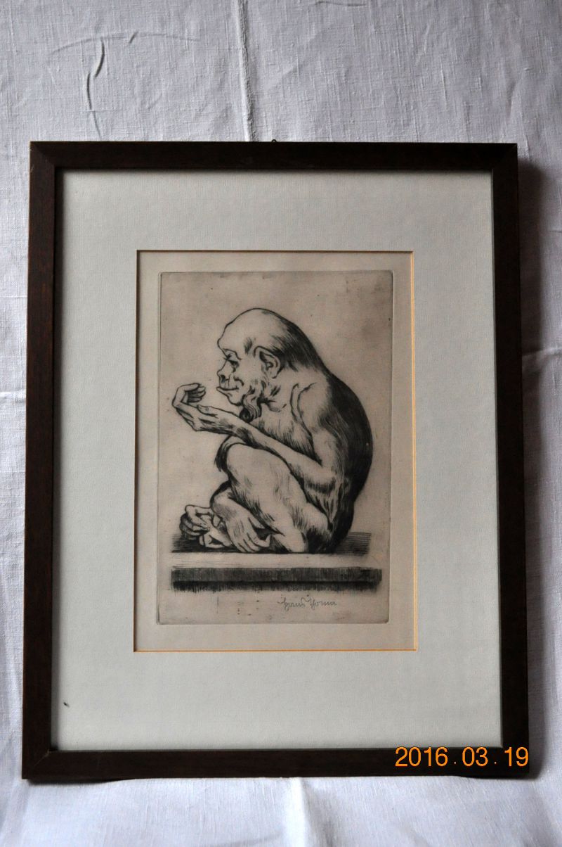 Gerahmter, kollorierter Druck, signiert – Rahmen leicht beschädigt