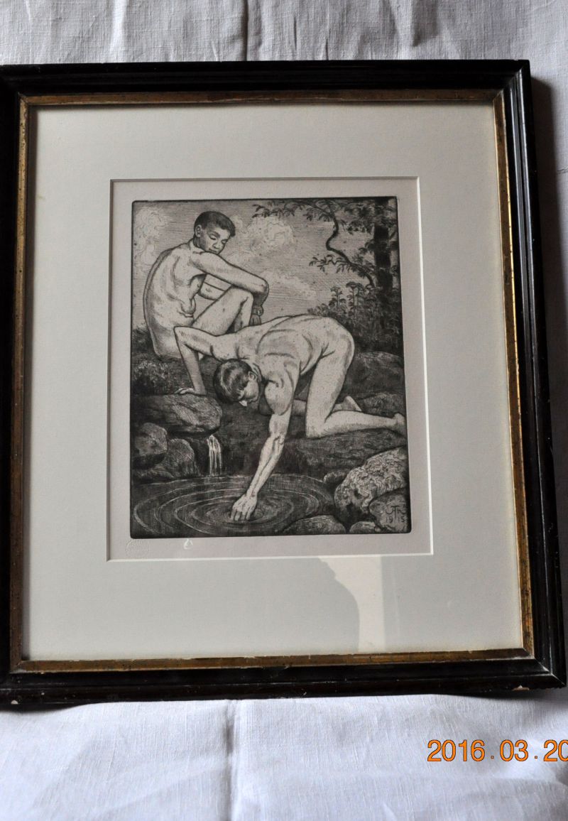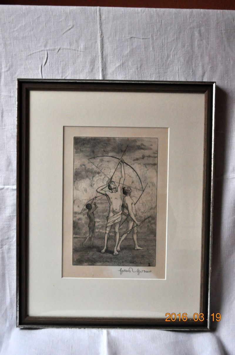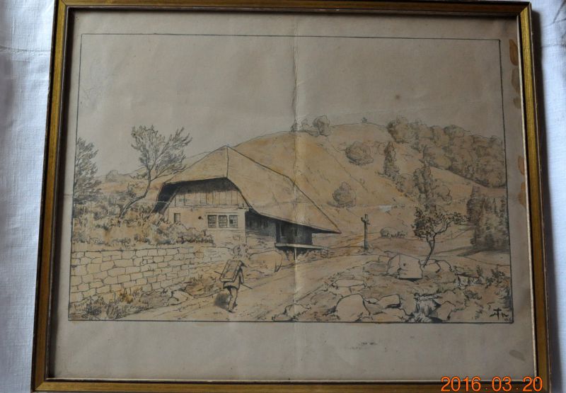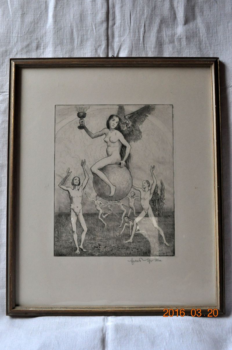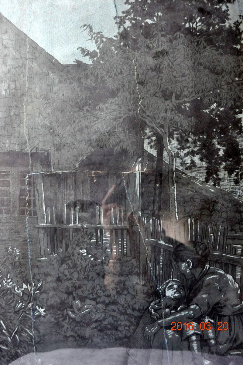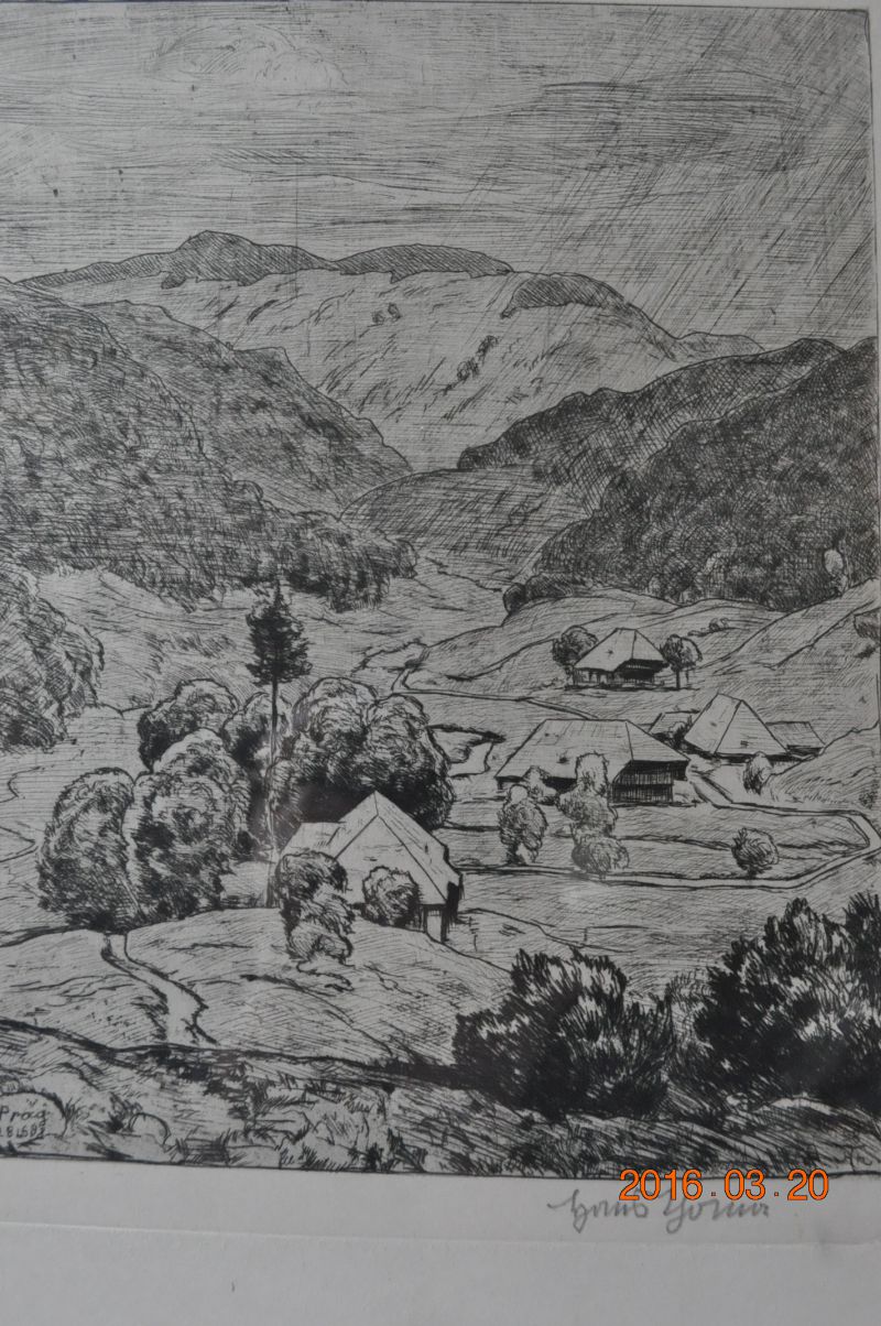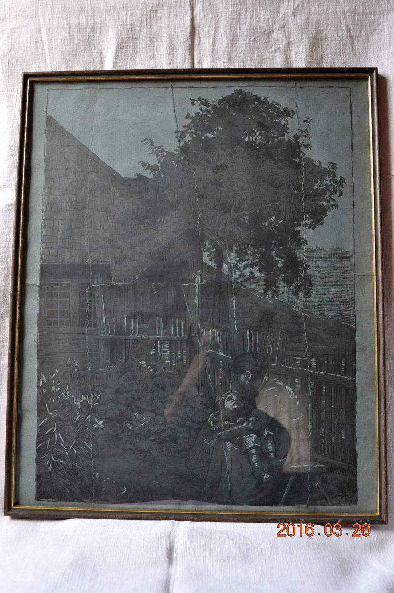 Gerahmter, kollorierter Druck, signiert – Rahmen leicht beschädigt