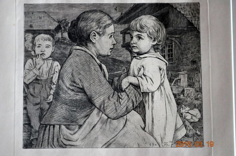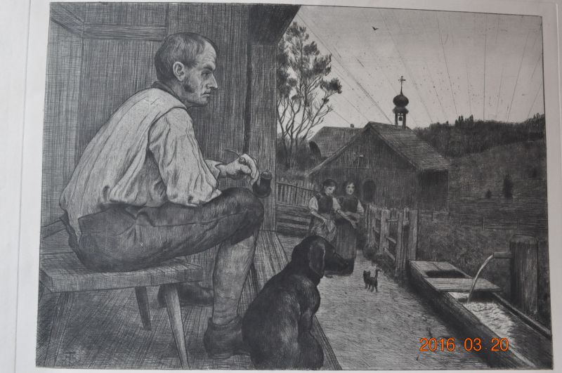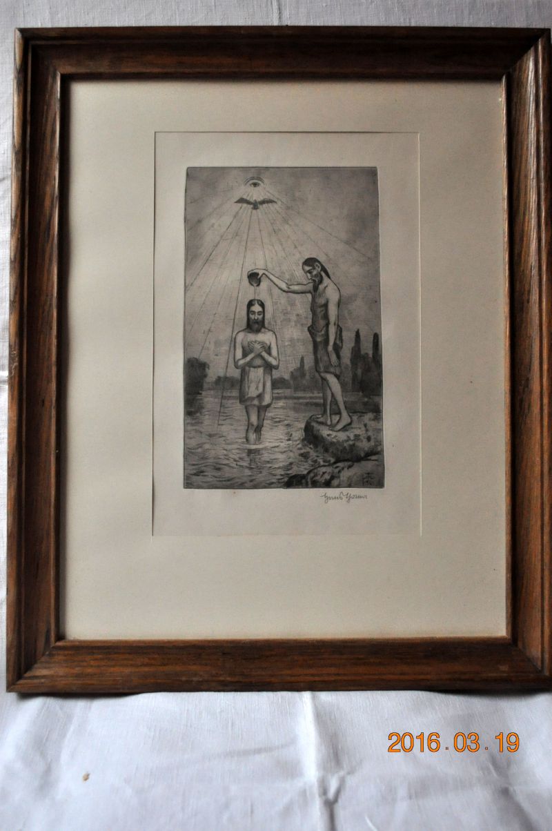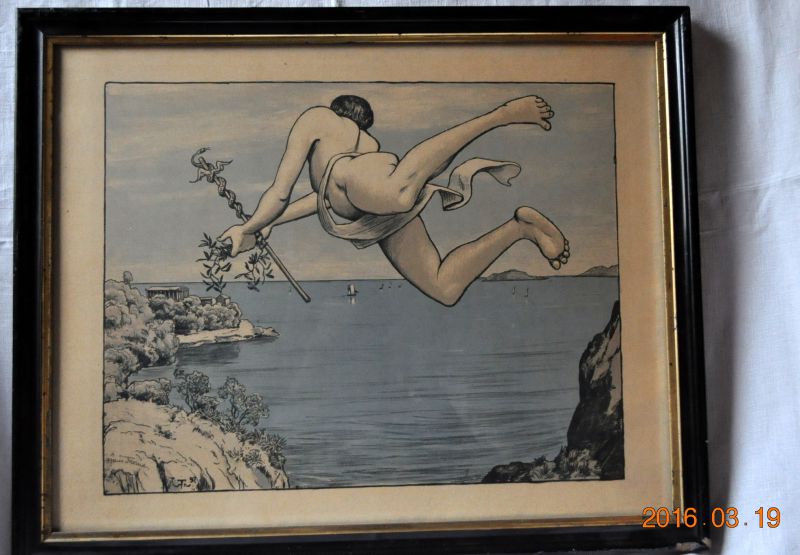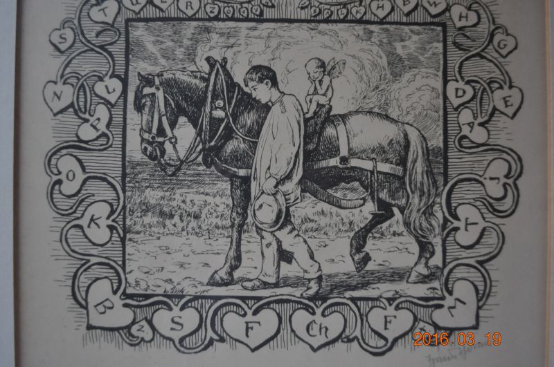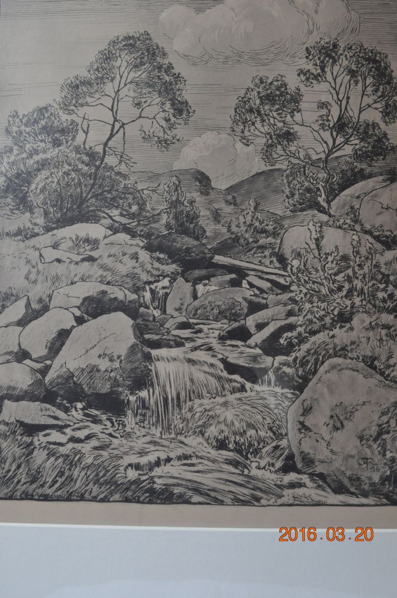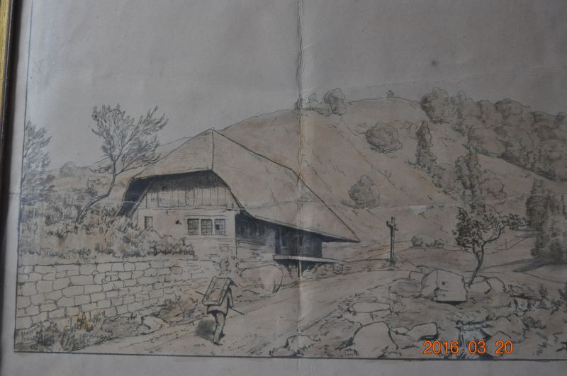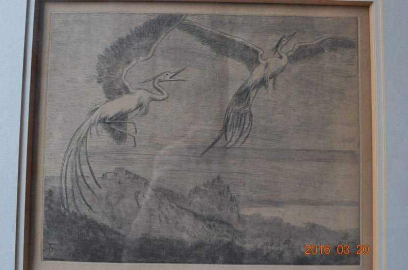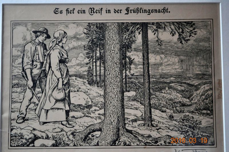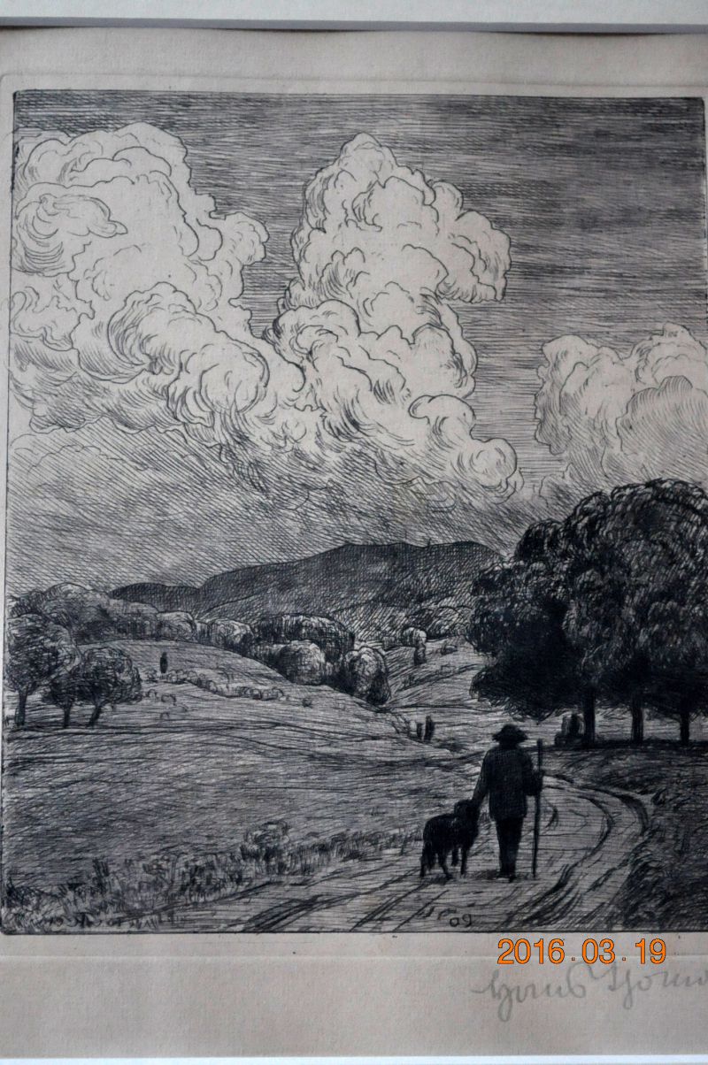 Gerahmter, kollorierter Druck, signiert – Rahmen leicht beschädigt