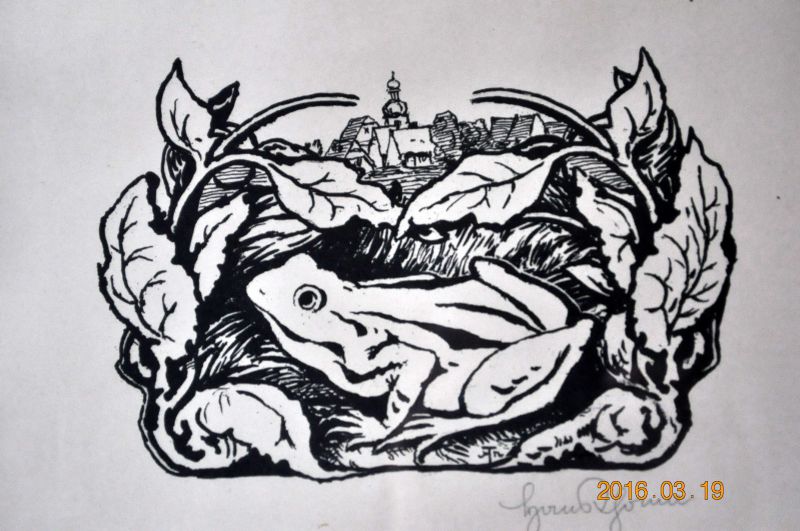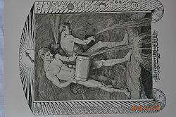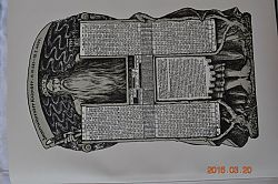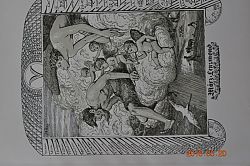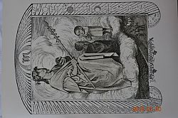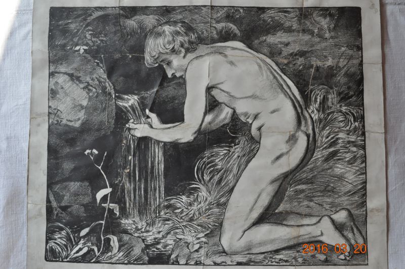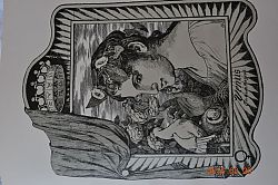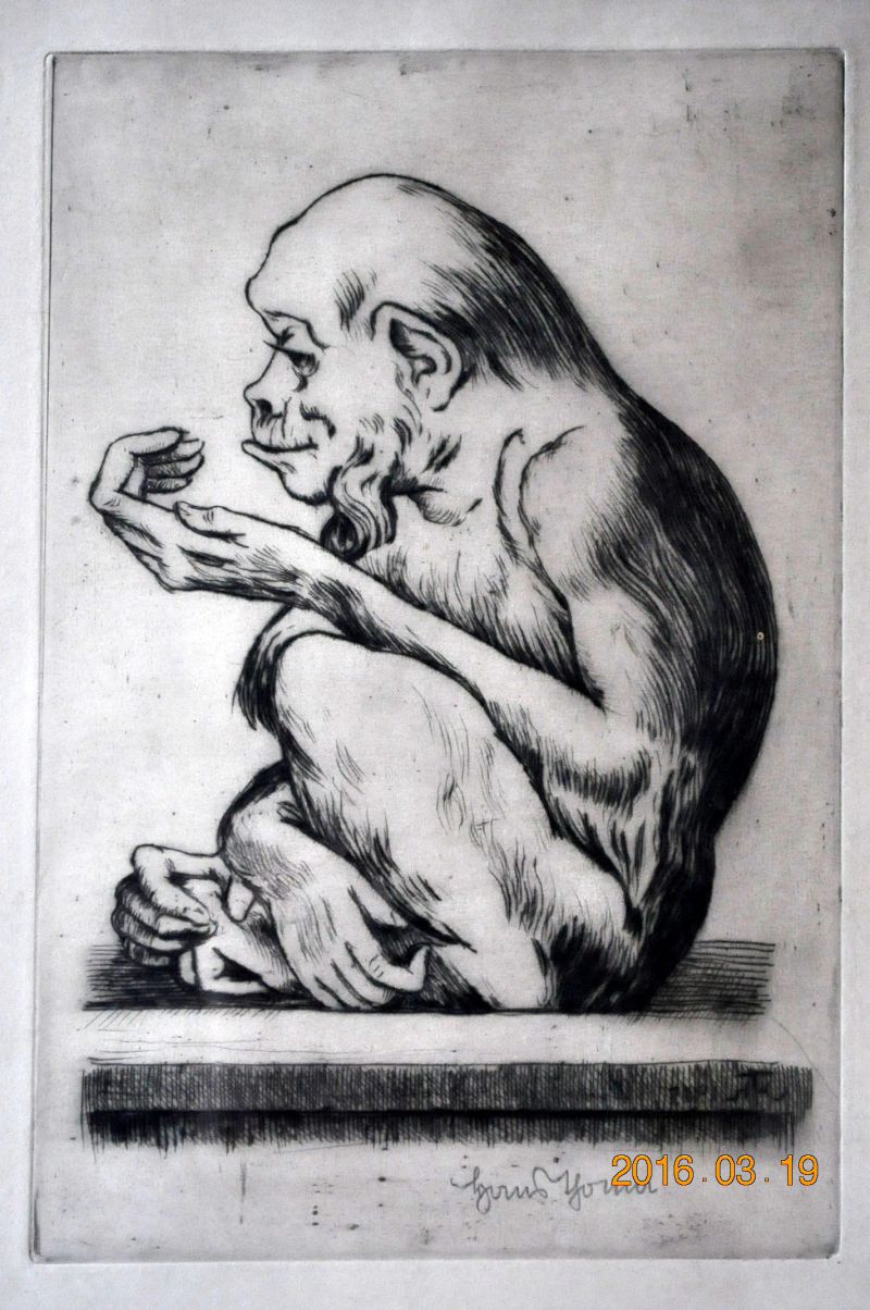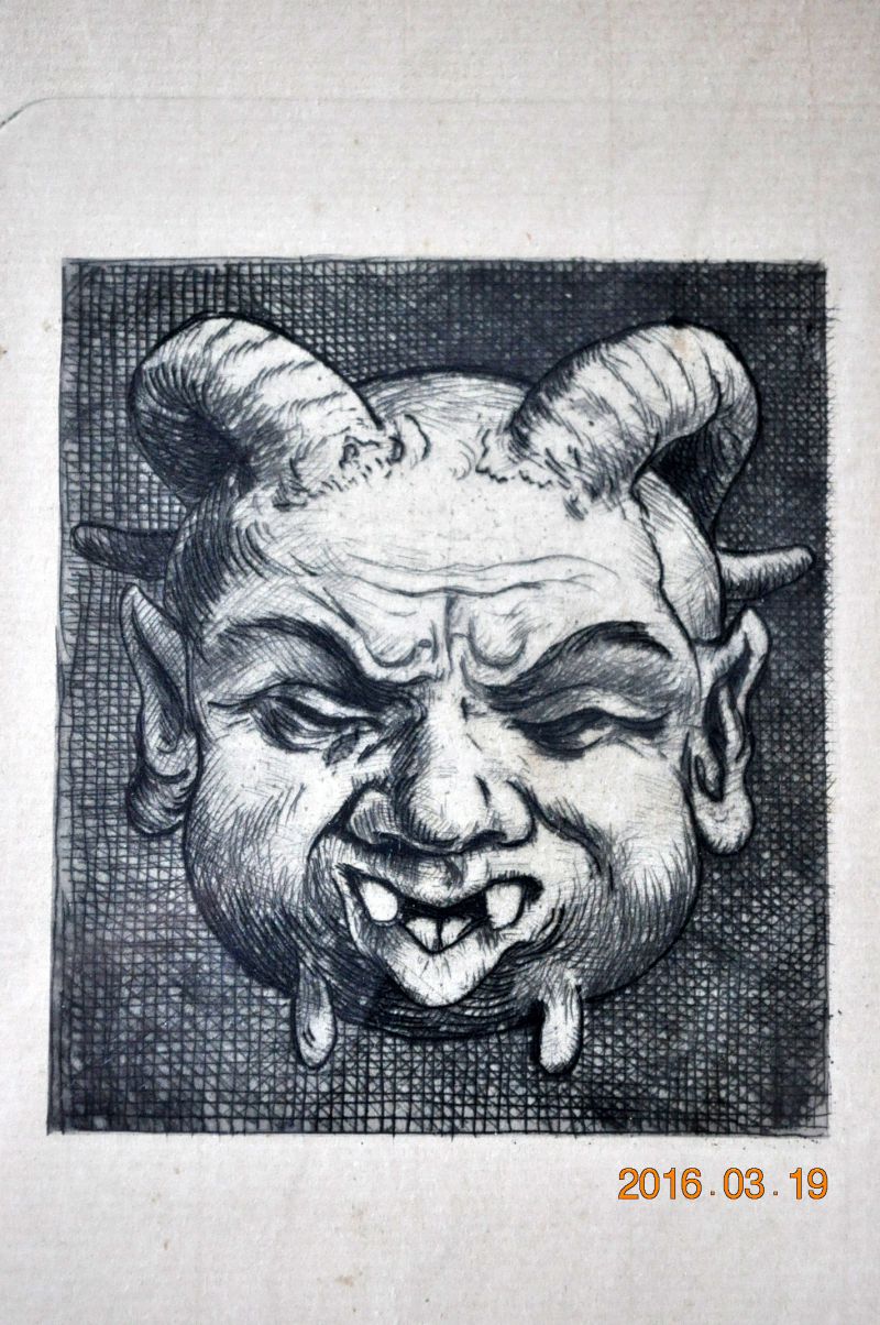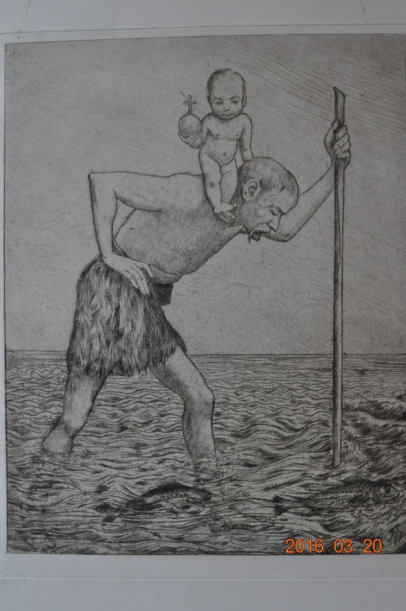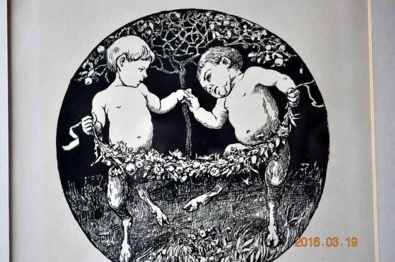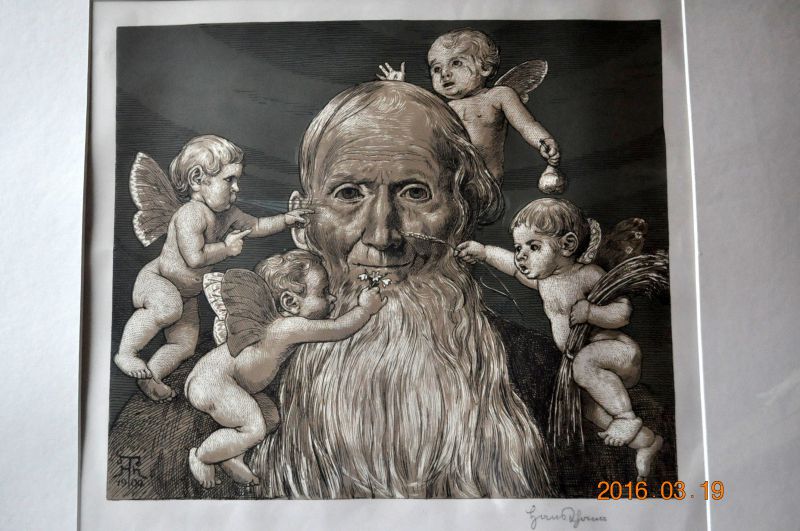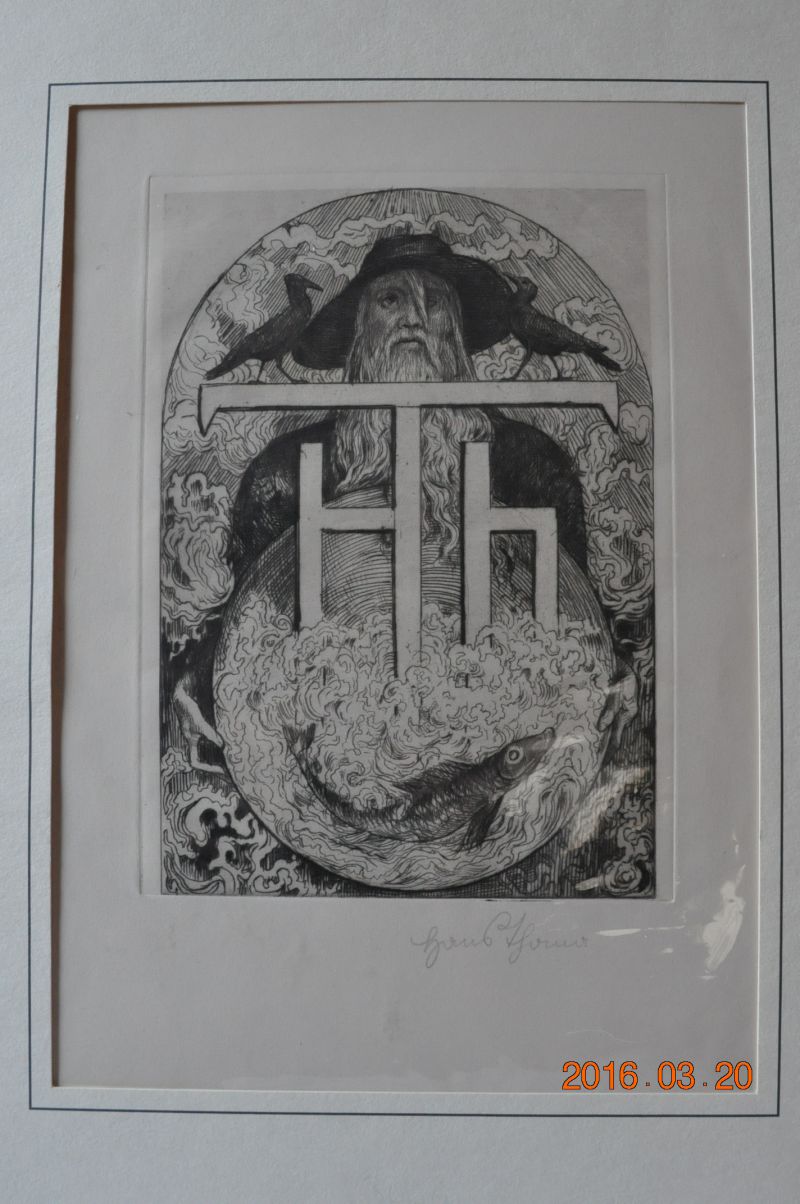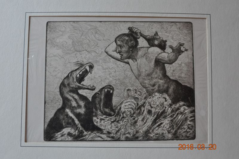 Gerahmter, kollorierter Druck, signiert – Rahmen leicht beschädigt
