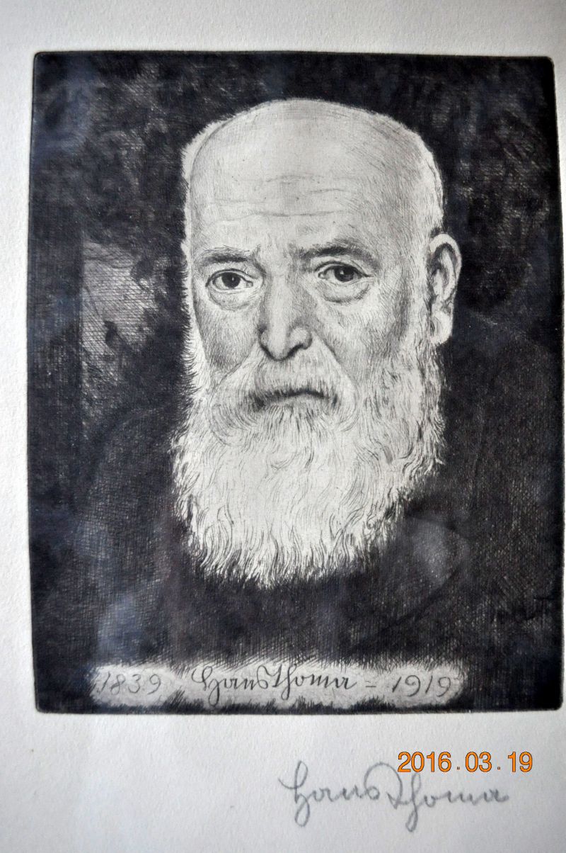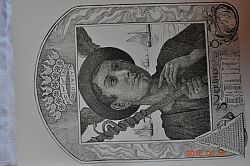 Selbstporträt in Uniform vno Tannenzweigen umgeben